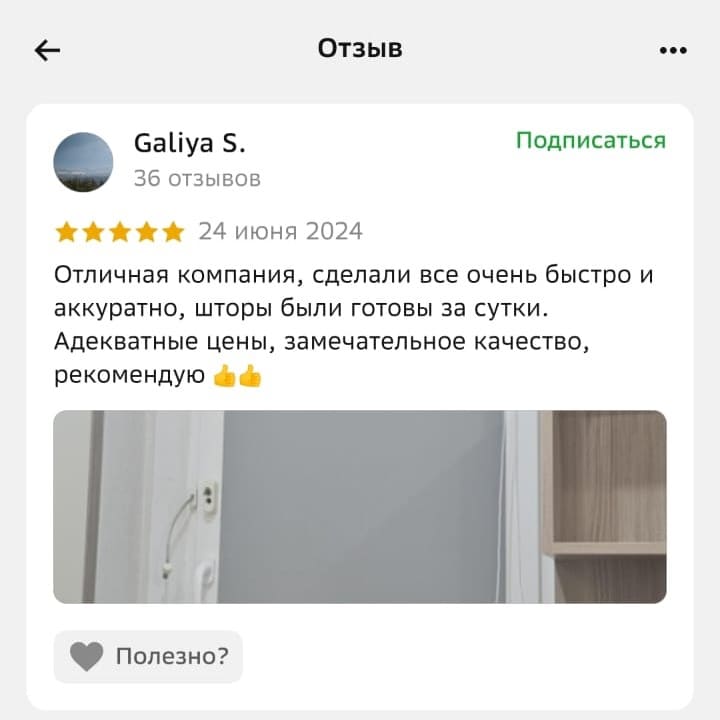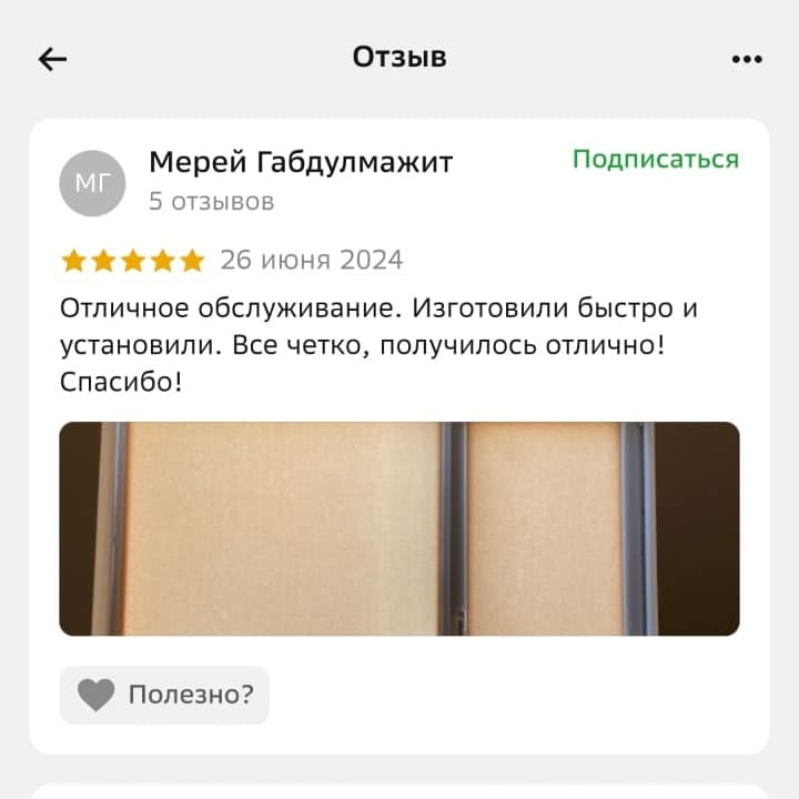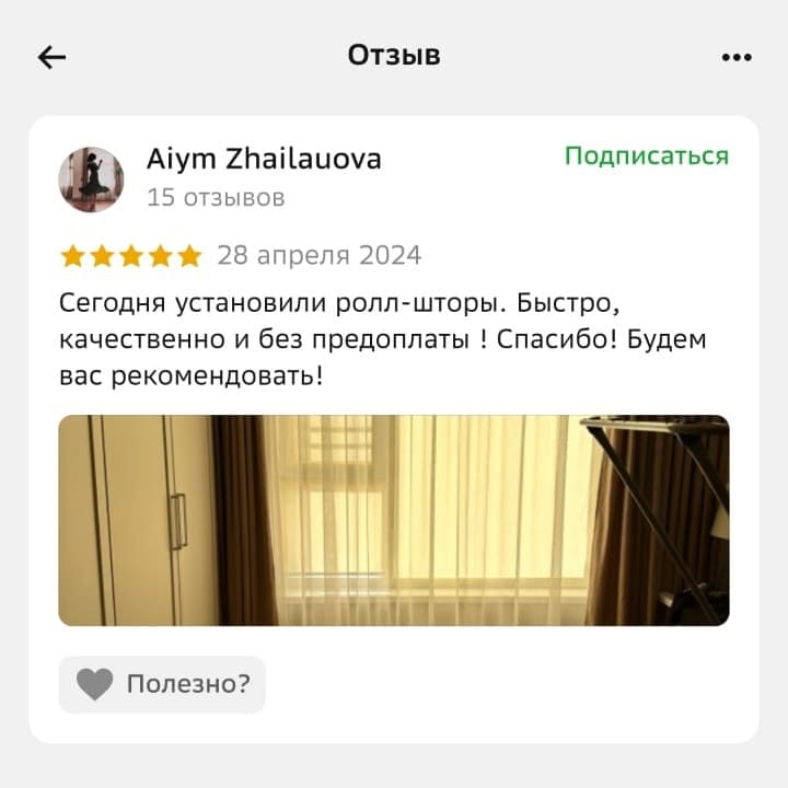 Да, мы не берем предоплату за жалюзи, ролл-шторы. Полная оплата после установки.