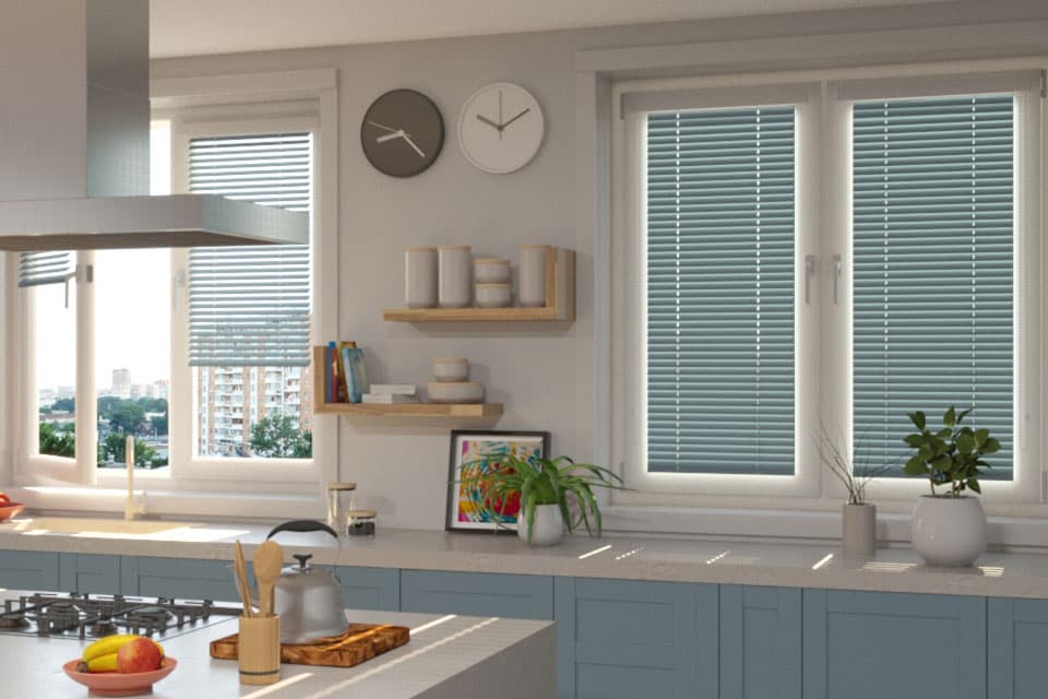 - Алюминиевые: Самый популярный вариант. Устойчивы к влаге, не выгорают на солнце и подходят для кухни, балкона и офиса.